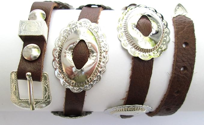 Western Hat Band Brown Leather With 10 Oval Scalloped Conchos 3 Pc Buckle Set Amazon Ca Clothing Shoes Accessories